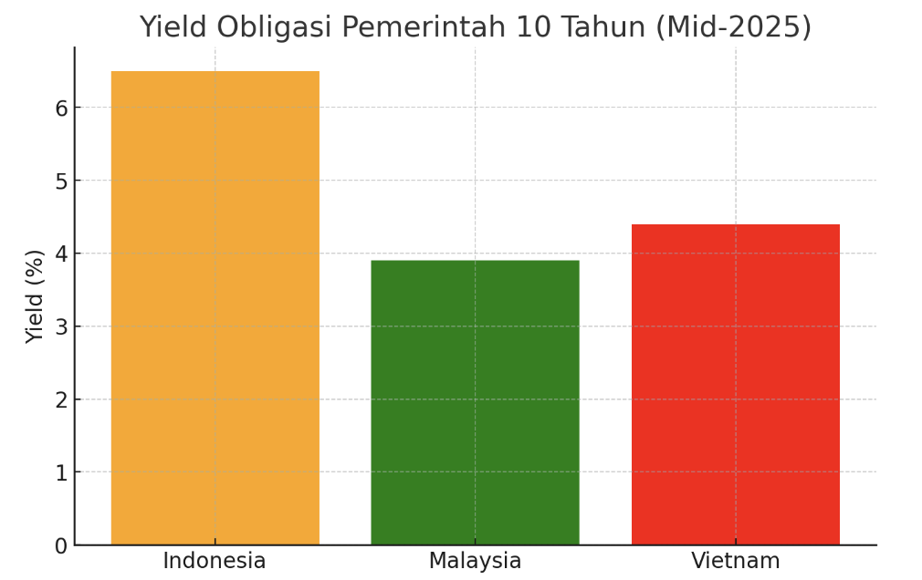 Bagi investor, Indonesia menawarkan kombinasi unik: yield obligasi yang relatif tinggi dengan status tetap investment grade. Dalam lanskap ASEAN, Indonesia menjadi opsi moderat—lebih aman daripada Vietnam, dan lebih menguntungkan secara imbal hasil dibanding Malaysia.