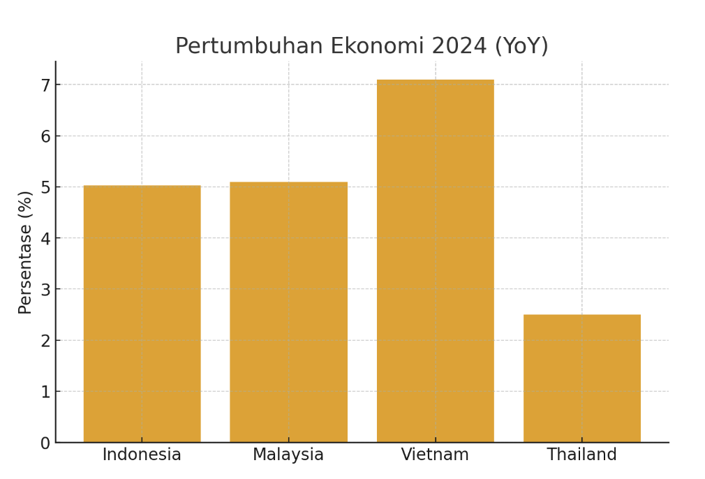 Indonesia memiliki keunggulan struktural yang sulit disaingi negara lain di kawasan. Dengan jumlah penduduk lebih dari 280 juta jiwa dan mayoritas berada di usia produktif, pasar domestik Indonesia sangat besar dan terus bertumbuh. Pertumbuhan ekonomi stabil di kisaran 5% per tahun menandakan resiliensi Indonesia menghadapi tekanan eksternal.